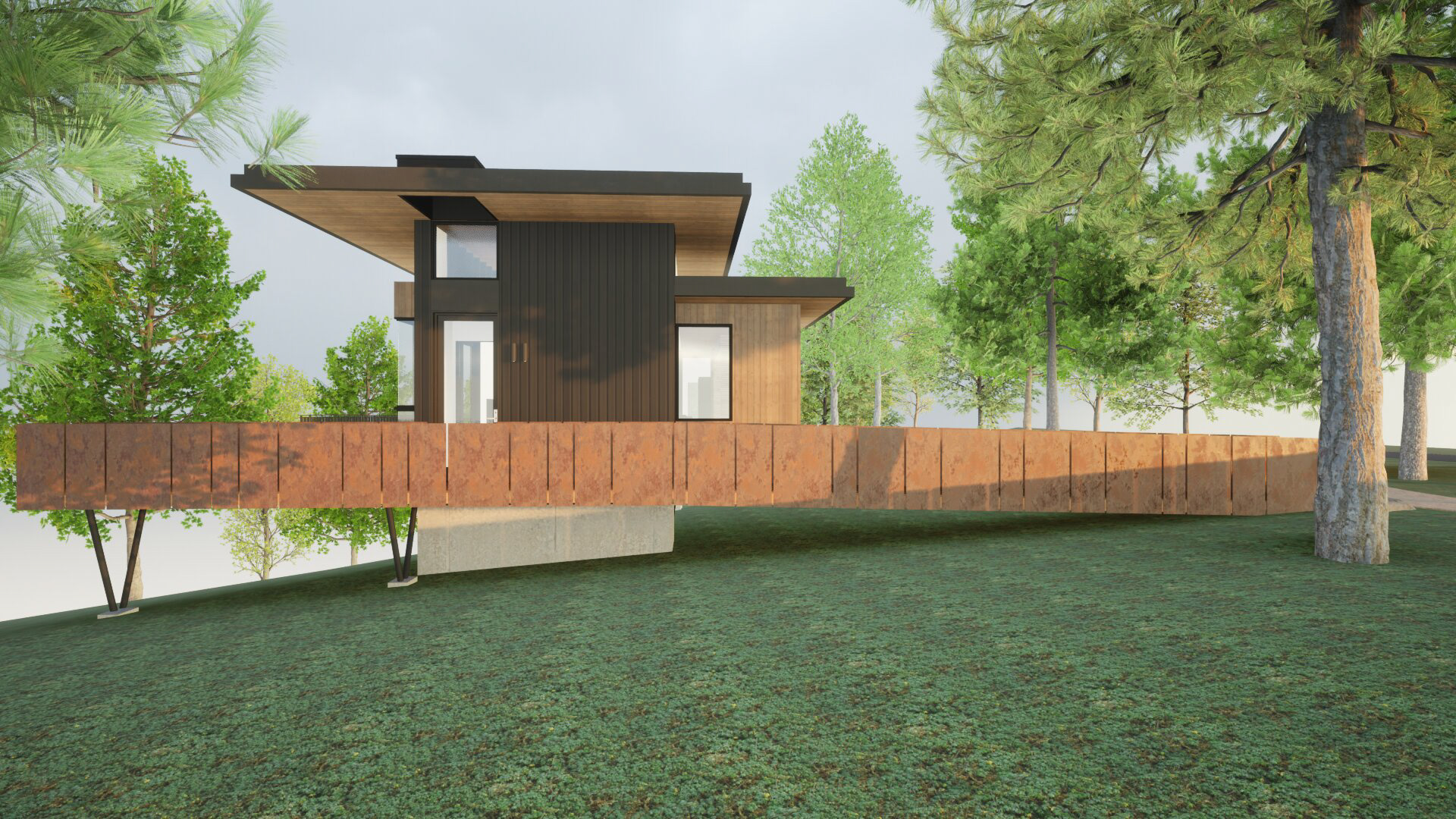 Image #2 - Once the basic model contains the necessary information we export it to a real-time visualization tool that links directly to our BIM software. This visualization tool allows us to quickly add elements like textures or materials, lighting, location, and vegetation.